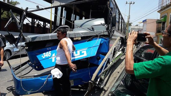 Por echar carreritas, un autobús quedó destrozado en la capital